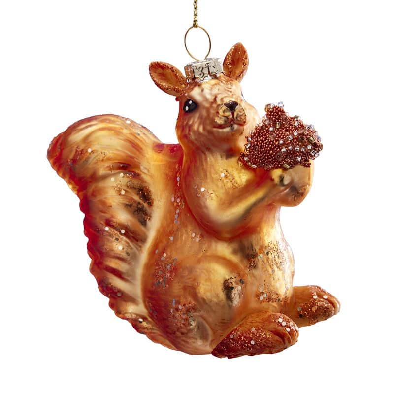 Eduard Eichhorn bringt augenzwinkernde Waldstimmung in dein festliches Zuhause. Der kleine Glashänger in Form eines Eichhörnchens ist ideal für kreative Dekorationen mit Tiermotiven. Seine edle Glasoptik, kombiniert mit feinen Details, macht ihn zum beliebten Schmuckstück am Weihnachtsbaum oder an Zweigen. Auch als Teil eines winterlichen Arrangements auf dem Tisch macht Eduard eine gute Figur. Ideal für alle, die ihrer Weihnachtsdeko eine originelle Note verleihen möchten.