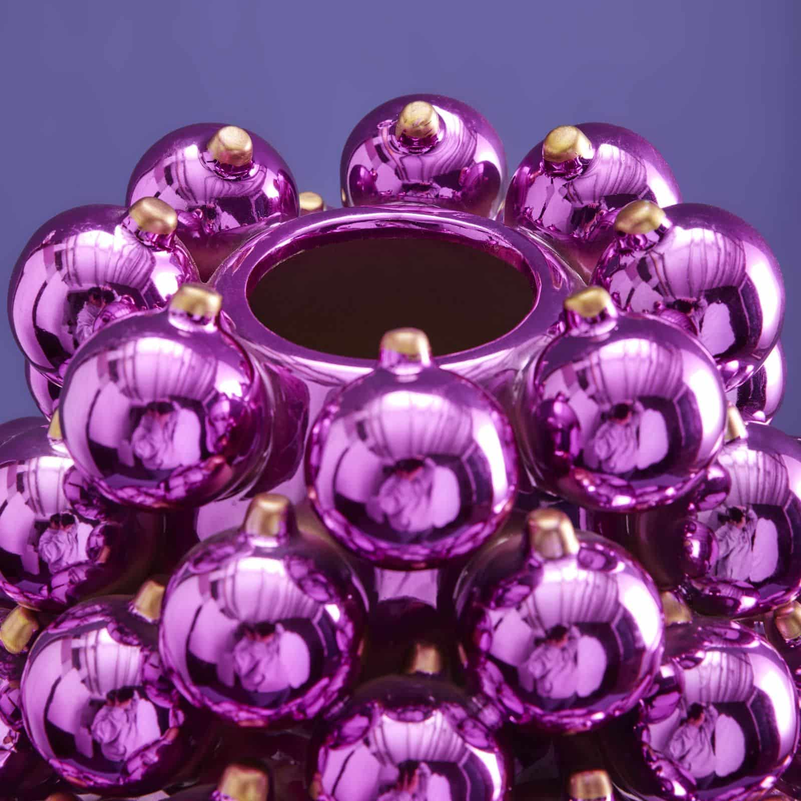 Eine Vase voller Wintermagie: Die Kugelvase Boule von WERNS® interpretiert das Prinzip unserer Fruchtvasen mit einem festlichen Augenzwinkern.
