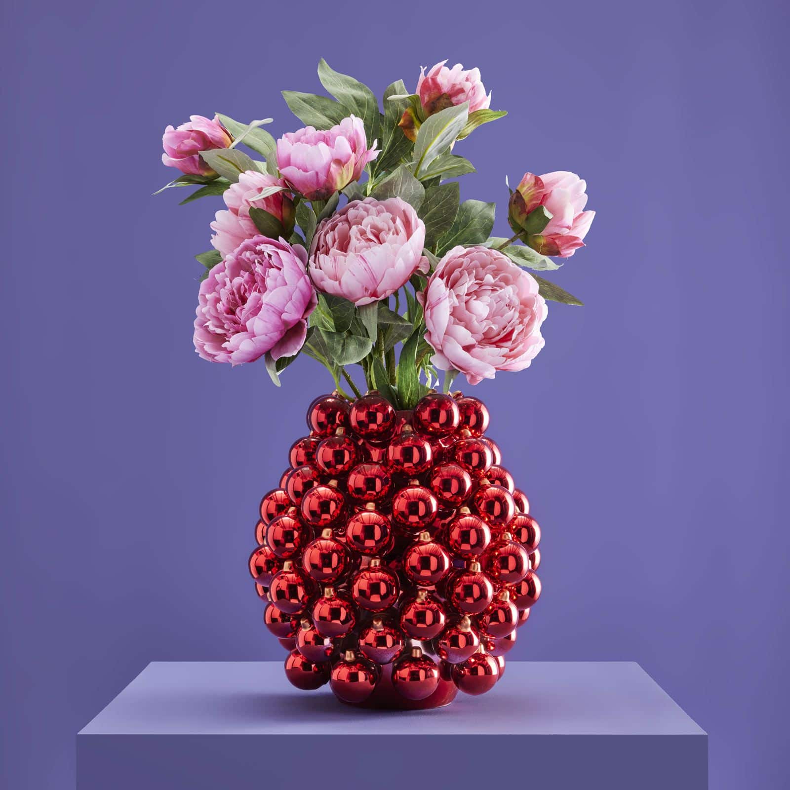 Eine Vase voller Wintermagie: Die Kugelvase Boule von WERNS® interpretiert das Prinzip unserer Fruchtvasen mit einem festlichen Augenzwinkern.