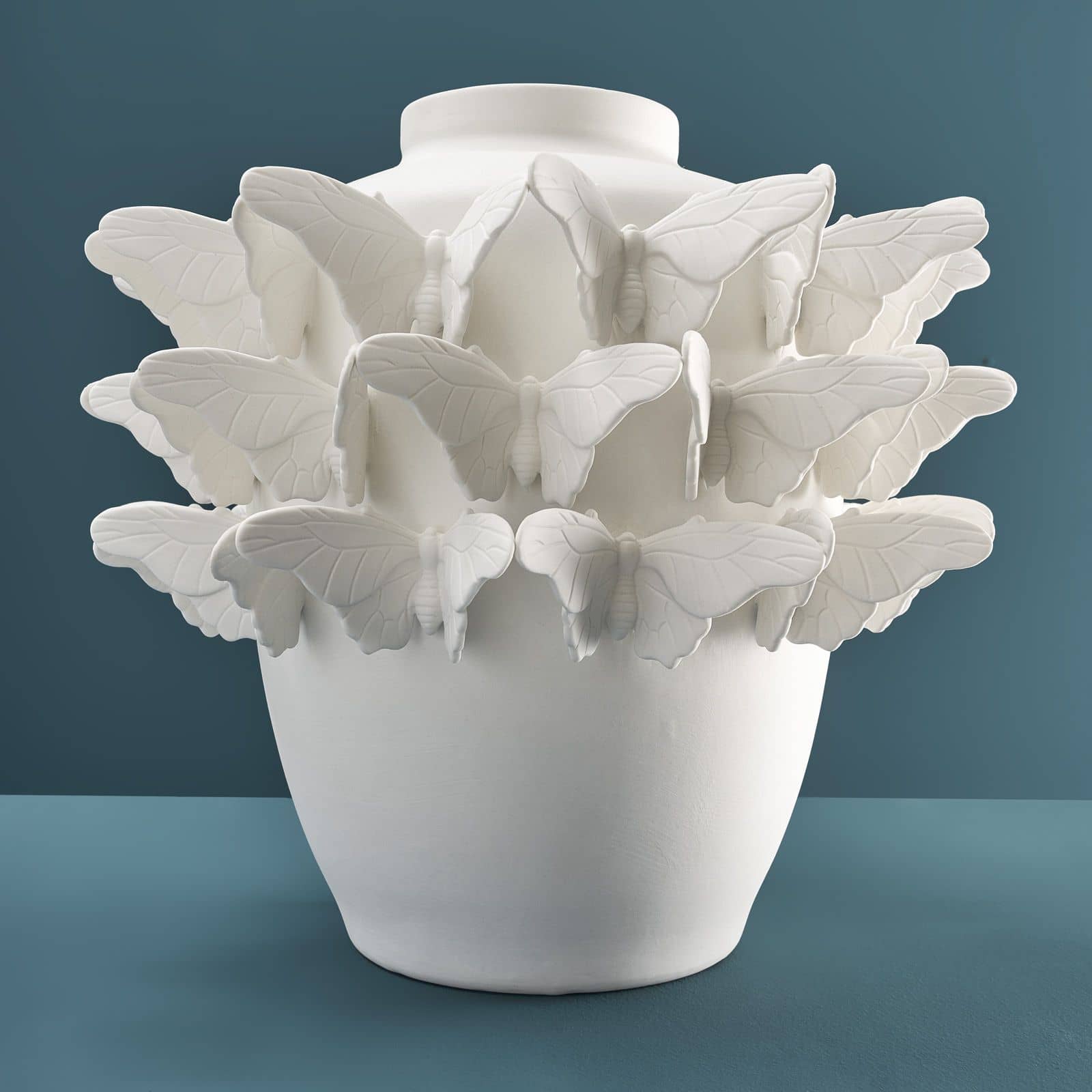 Die handgefertigte Schmetterling Vase von WERNS® verwandelt klassische Keramik in ein Kunstobjekt mit poetischem Charme.