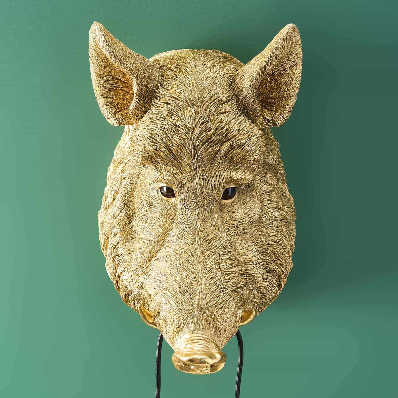 Wandleuchte Wildschwein / Schwein Willy, gold