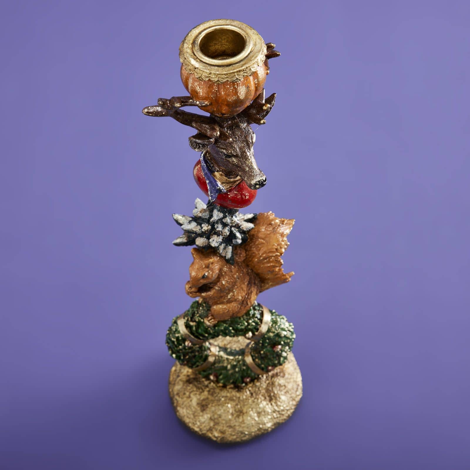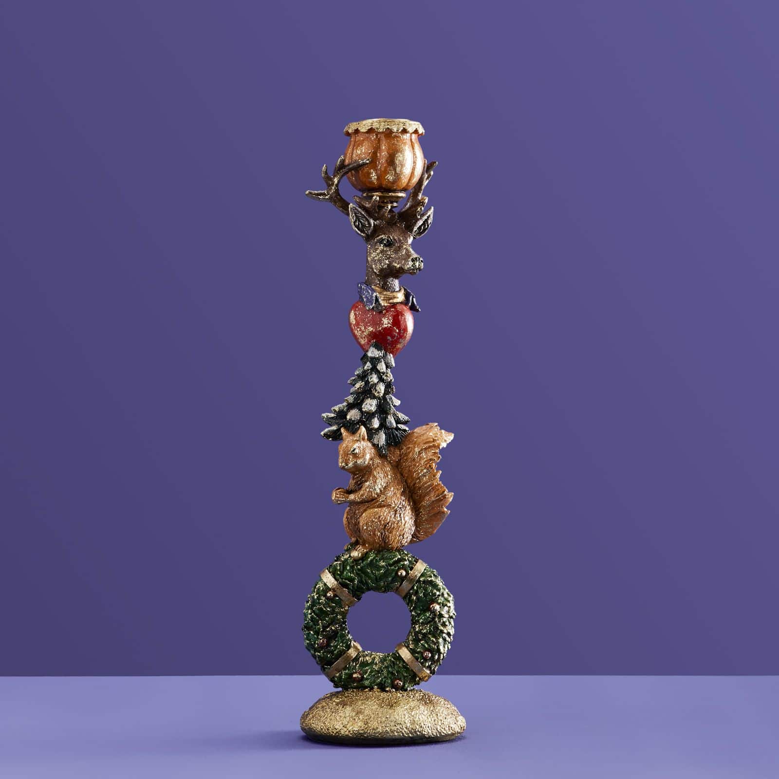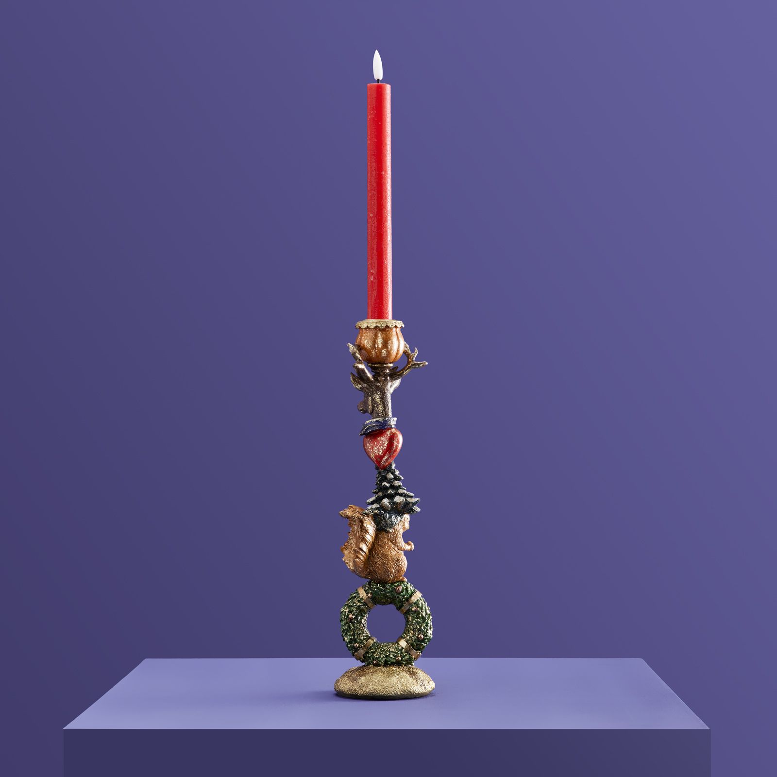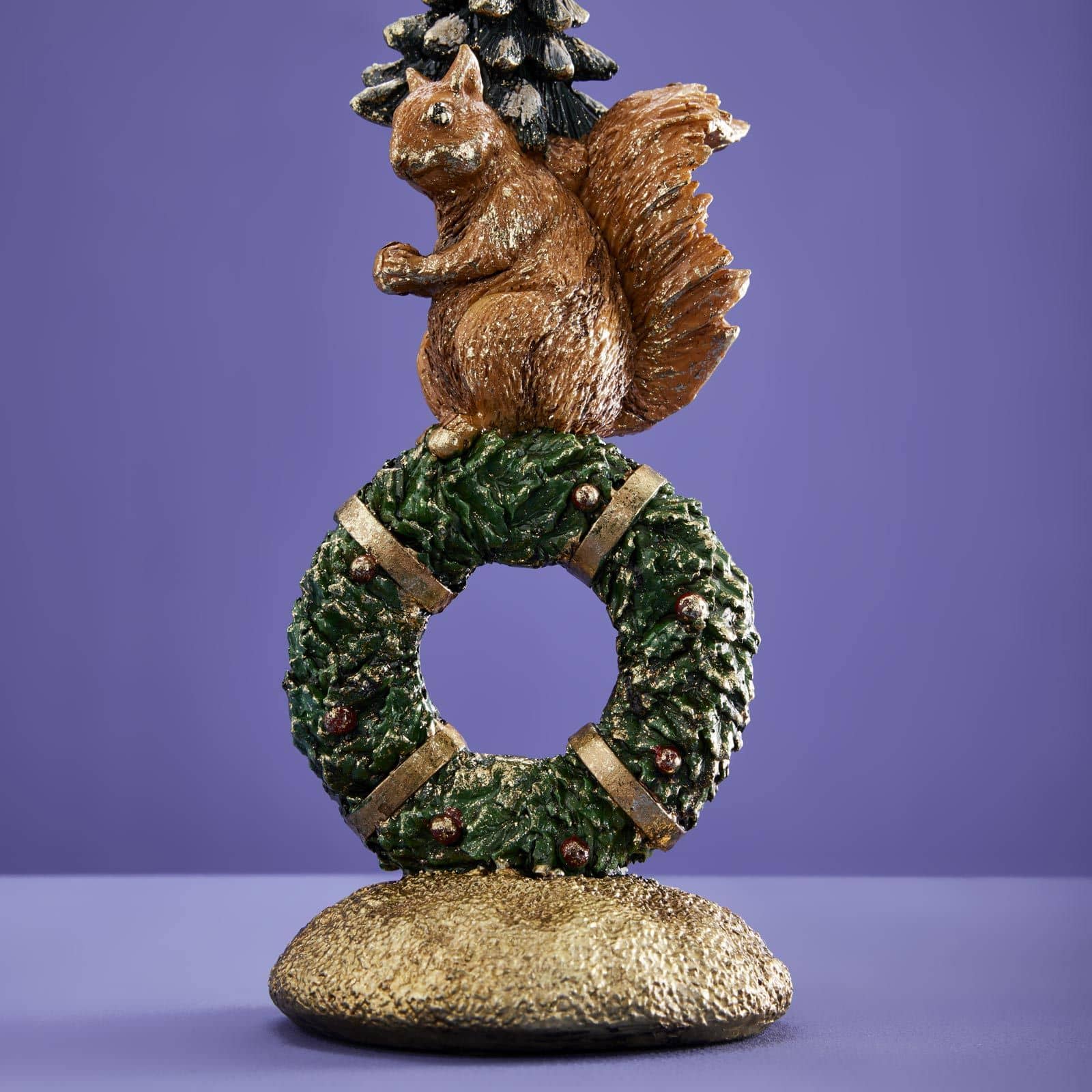 Kerzenleuchter Eichhörnchen auf Kranz, mehrfarbig