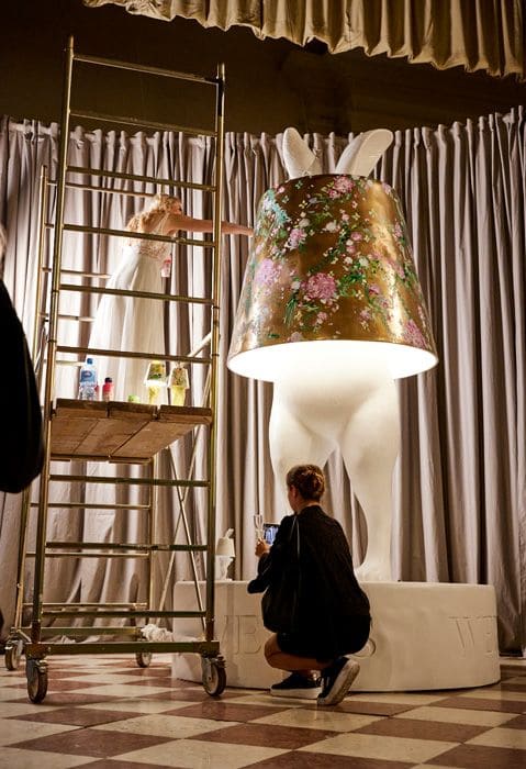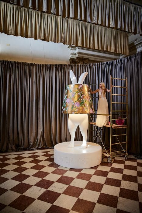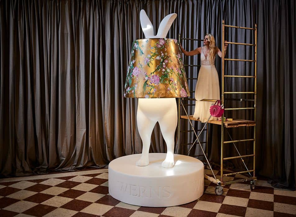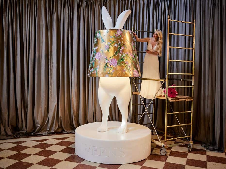 The live performance on October 11 marks the completion of the 3.5-meter Hiding Rabbit installation. To extend the spirit of the work beyond Venice, two unique pieces will be created for charity: a limited-edition Hiding Rabbit Lamp, hand-painted by the artist and a couture Thaden handbag, also handpainted by the artist. Both objects will be auctioned, with proceeds going to a charitable cause. This way, the installation does not only remain as an iconic symbol of the festival, but also becomes a contribution to society.
