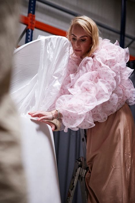 The installation begins its journey in Germany and travels to Italy, where it will be completed in a live performance on October 11. For this unique edition, WERNS collaborates with artist Juliane Golbs, who transforms the white sculpture into an extraordinary piece of art. Her practice draws on the poetry of fleeting everyday moments and employs a wide range of techniques. Her visual language creates a dialogue between art, design, culture, and fashion – timeless and elegant, yet playful and modern. With references to Alice in Wonderland, the installation becomes a narrative object, telling a story of curiosity, transformation, and togetherness.