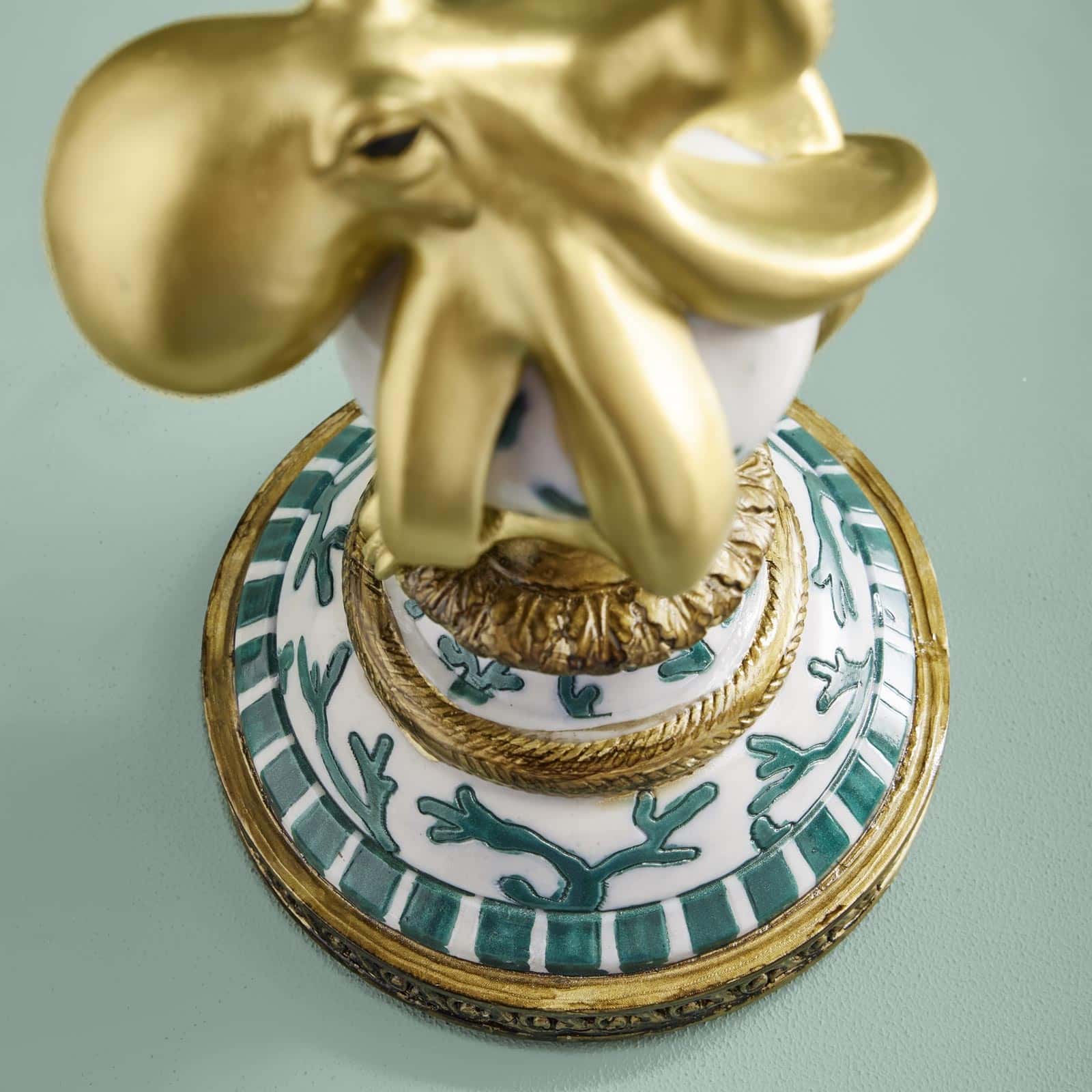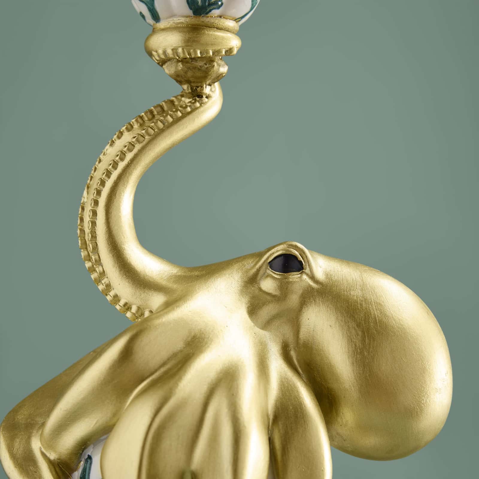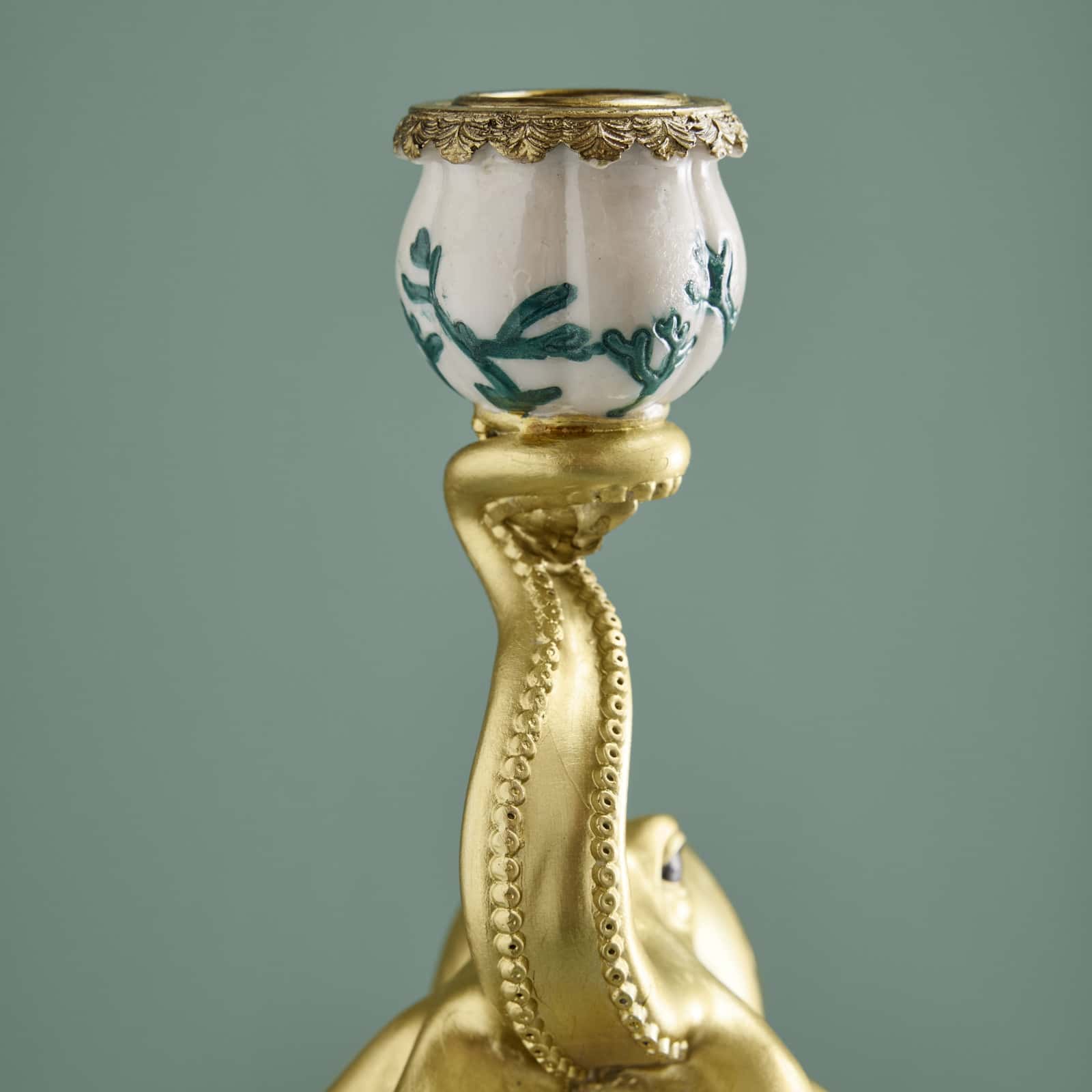 Set of 2 Otto Octopus candle holders, turquoise-white-gold