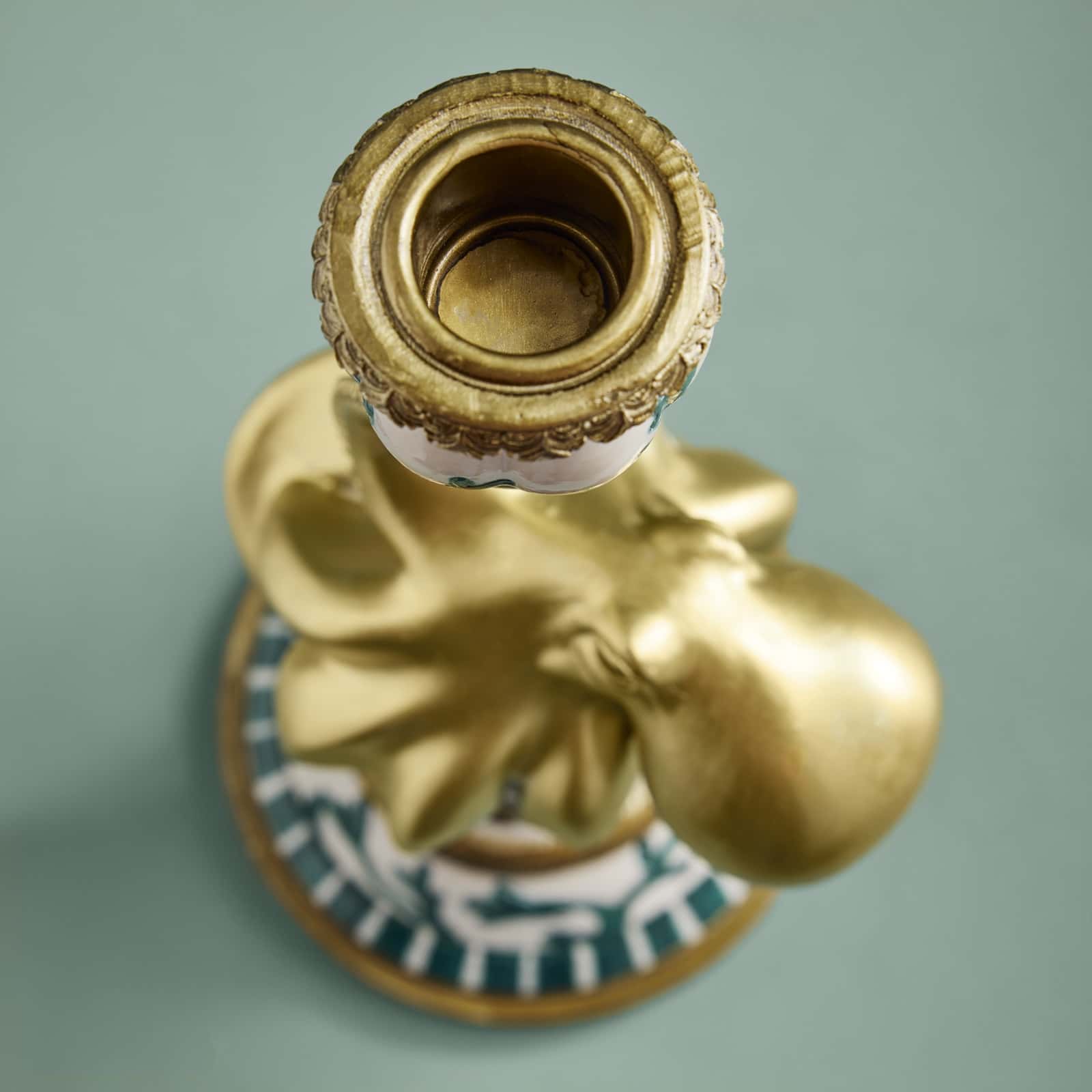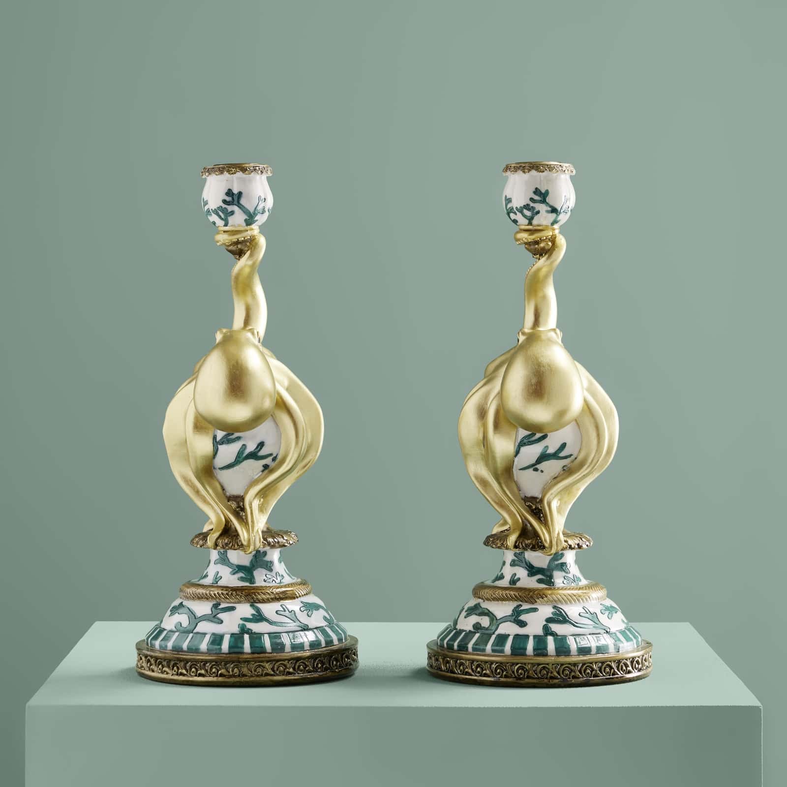 The Otto candle holder duo brings presence to a console, sideboard or table with gold-toned details and a maritime motif.