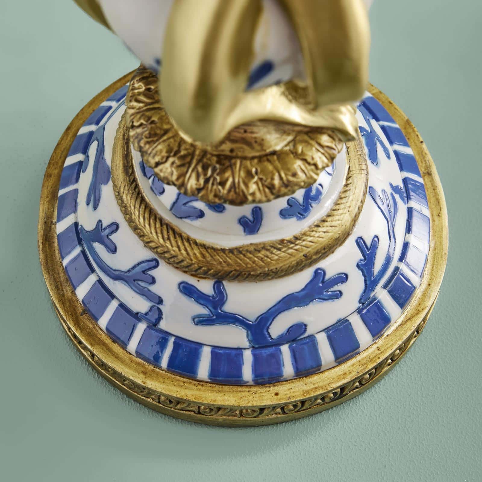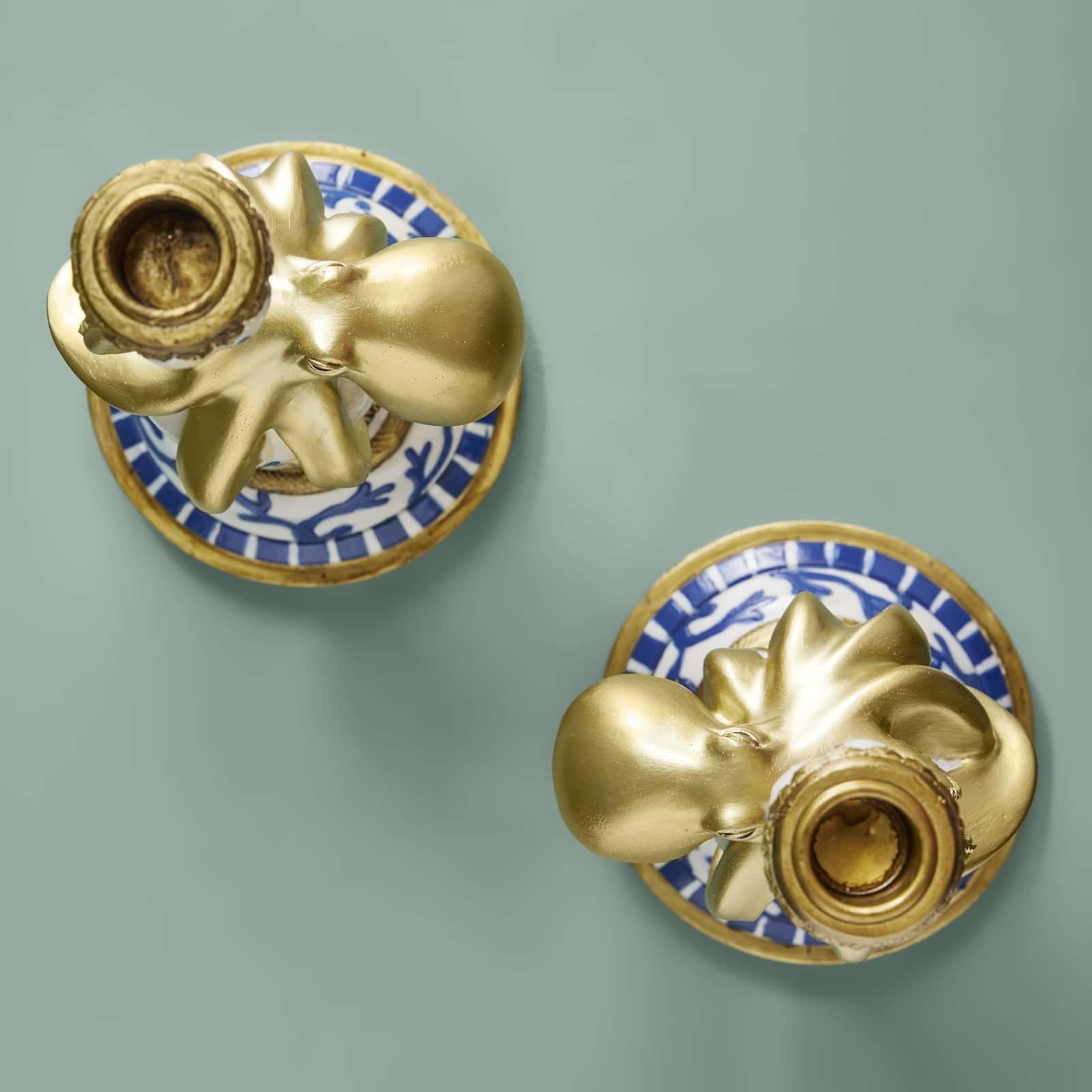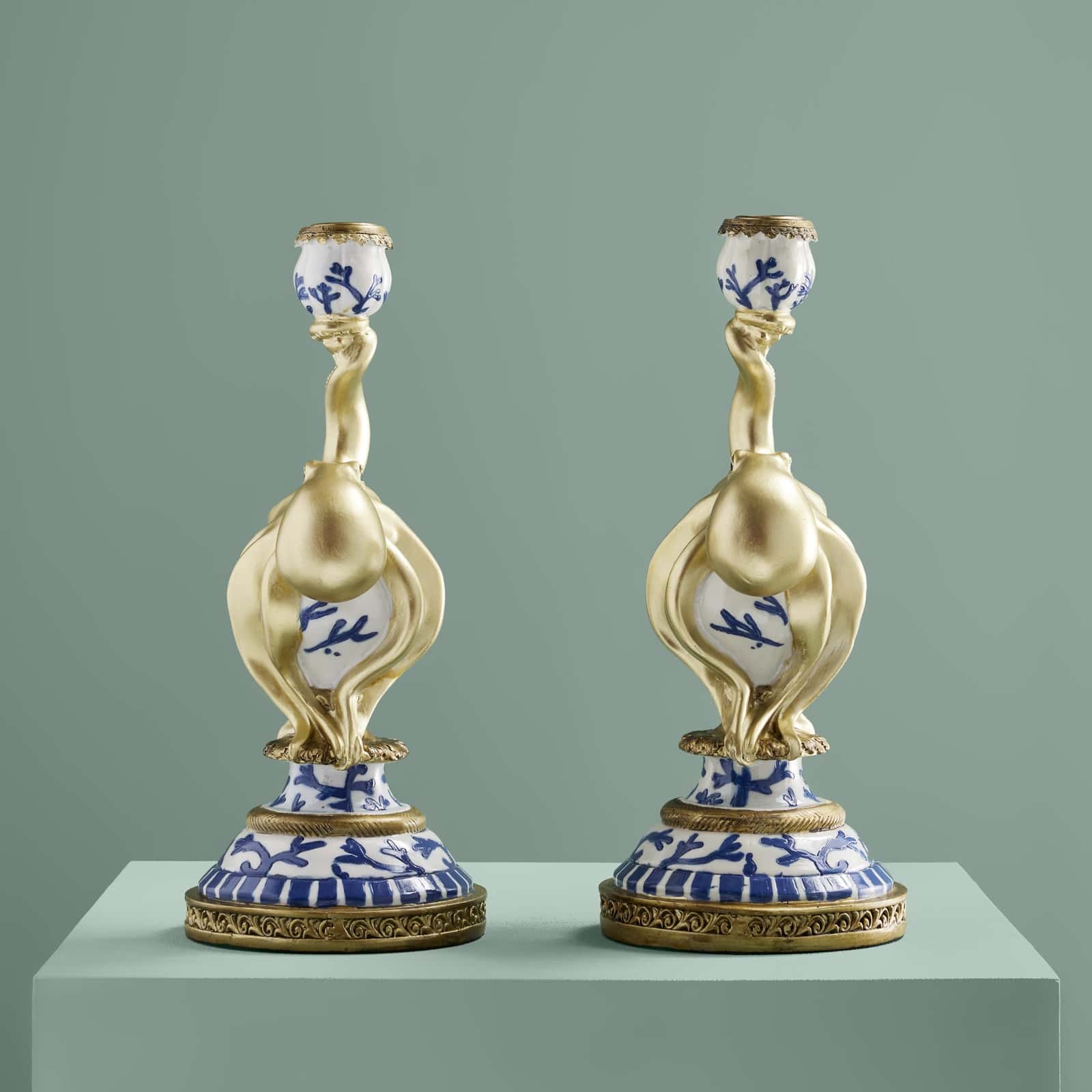 The Otto candle holder duo brings presence to a console, sideboard or table with gold-toned details and a maritime motif.