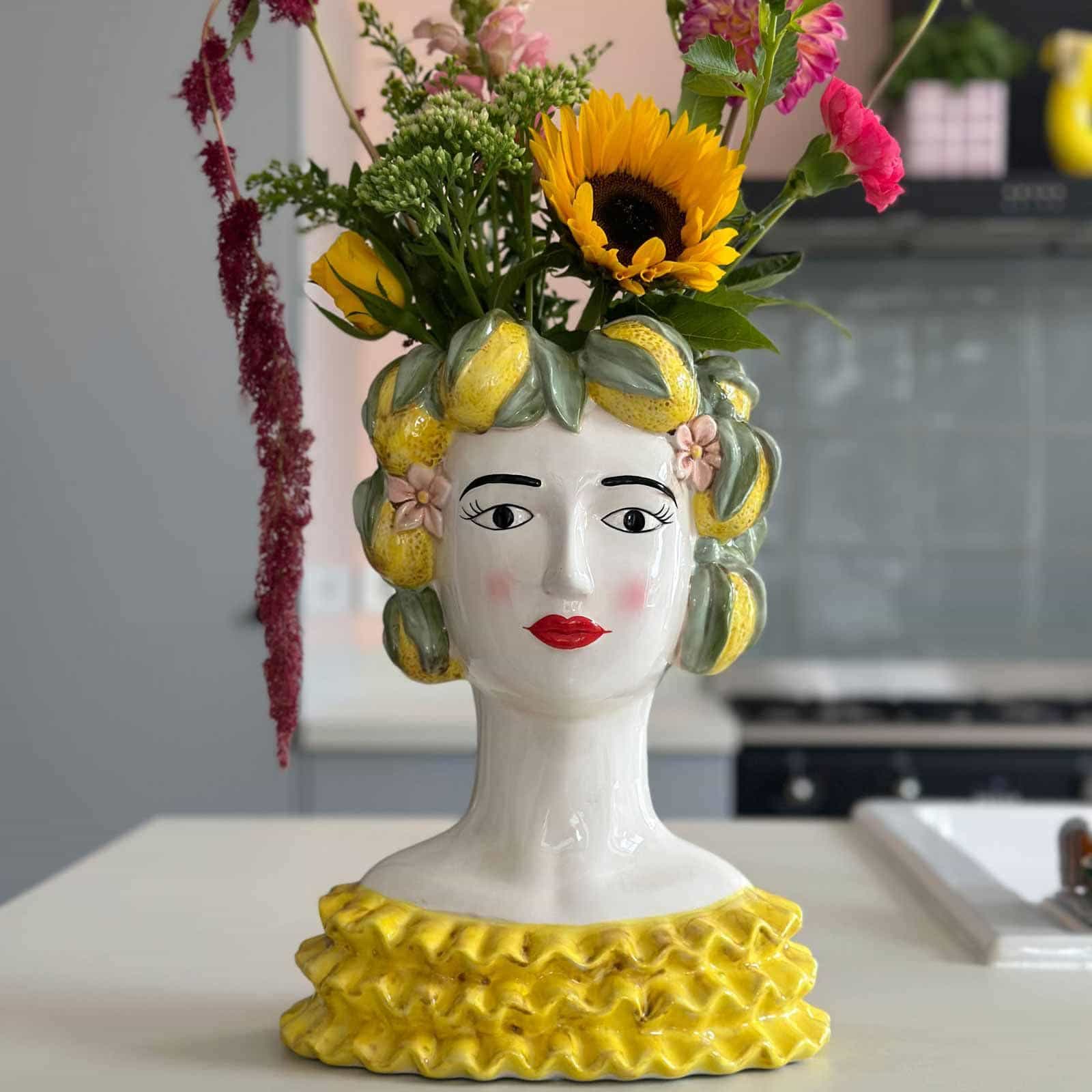 Sicilian female bust / decorative vase Lady Lemon, yellow-green, hand-painted