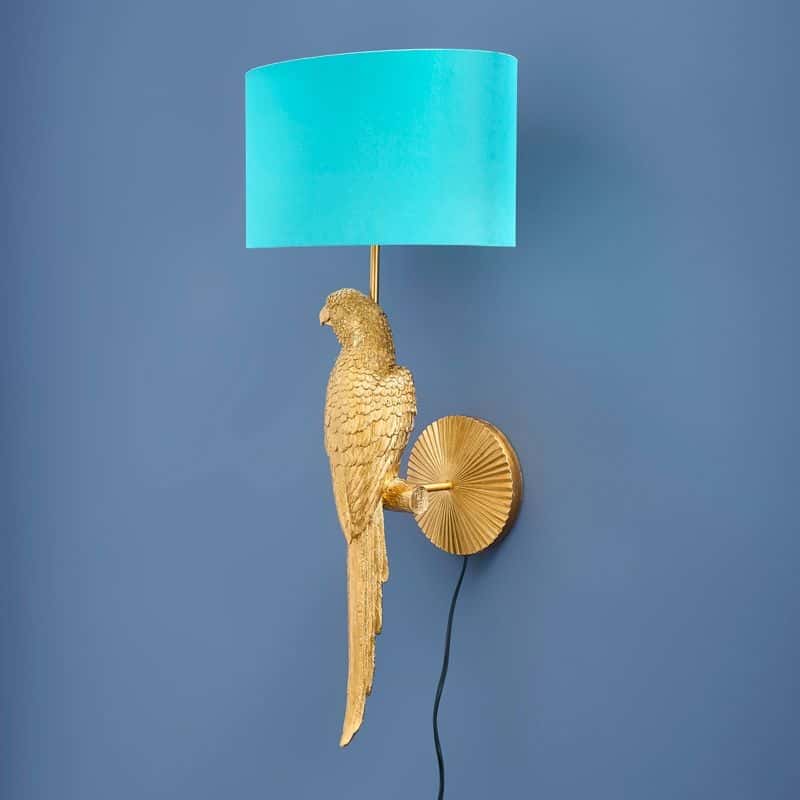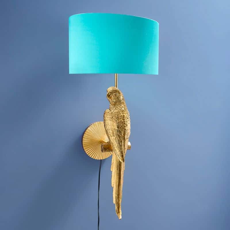 Very Very beautiful lamps. Very Beautiful Wandleuchte Papagei Percy rechts, gold-türkis color and very nice lampshade in turquoise. We used them for a bathroom and they upgrade the room