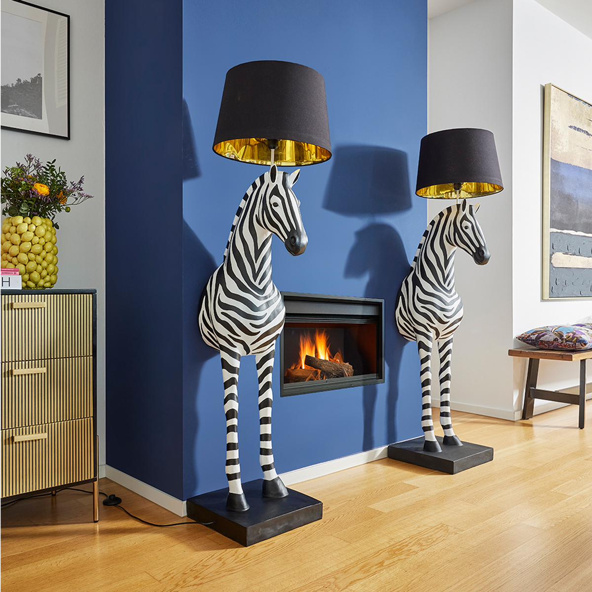 Desenhado por WERNSO candeeiro de pé Zebra Zora da WERNS® traz um design extravagante e uma elegância artística para a sua casa. Com o seu design pormenorizado e tamanho impressionante, cria um ambiente atmosférico e atrai a atenção de todos.