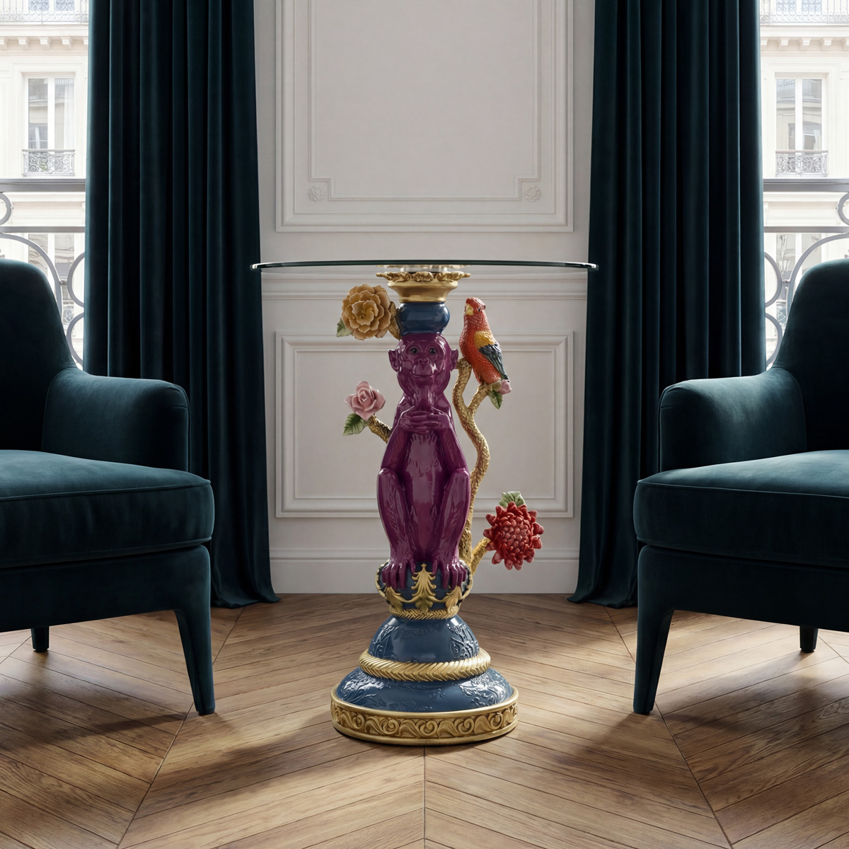 The side table Monkey with Parrot by WERNS® is a statement piece, and with its original design, it draws everyone's attention. An extraordinary design piece for lovers of unique furniture.
